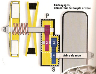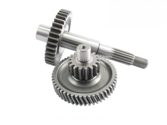 La transmission sur scooter est composée de deux axes portant chacun un pignon dont un avec un engrenage et d'un axe avec deux engrenages sans pignon.