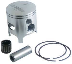 Le piston est la seule partie mobile qui compose un haut moteur. Il se déplace de haut en bas du PMB (Point Mort Bas) au PMH (Point Mort Haut) au coeur du cylindre. Il est composé d'un ou deux segments selon les hauts moteurs (sur moteur 2T) qui ont pour but d'augmenter le taux de compression et d'améliorer l'étanchéité du piston. Il est fixé sur un axe qui le traverse et qui est fixé sur la tête de la bielle du vilebrequin avec une cage à aiguille (un mini roulements). L'axe qui maintient le piston est bloqué de part et d'autre du piston part deux circlips.