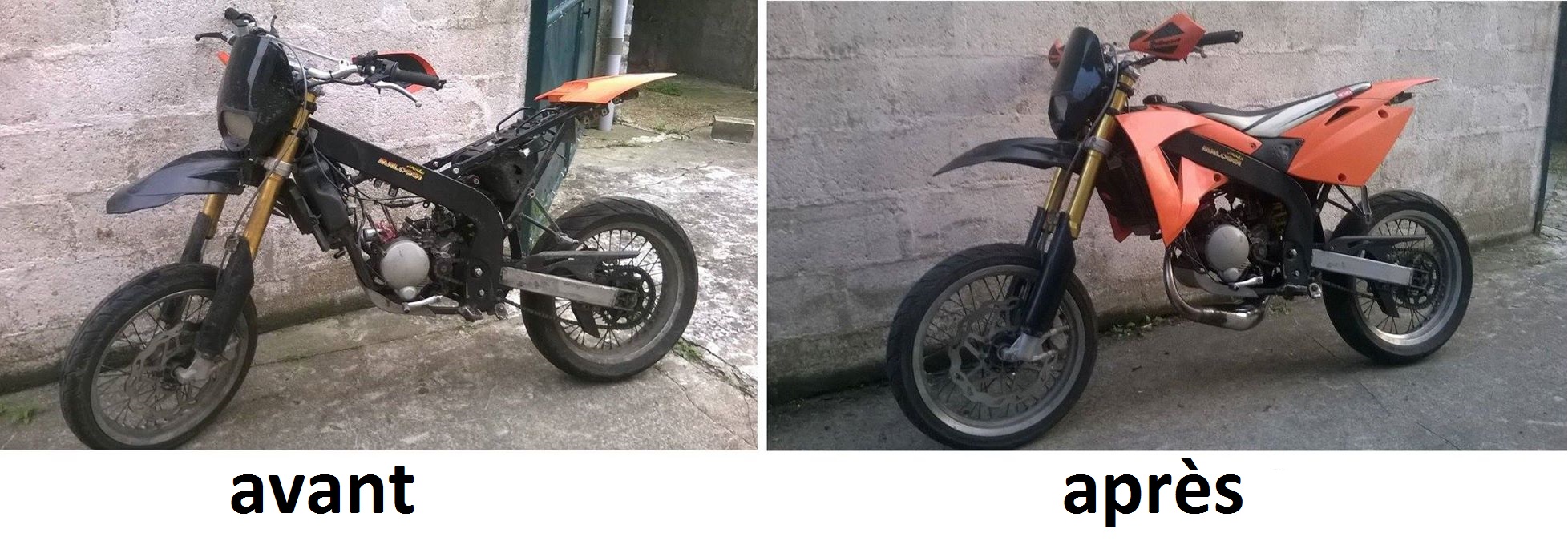 Voilà quelques machines remises en état de rouler ainsi que des pièces récupérées dans de sales états.